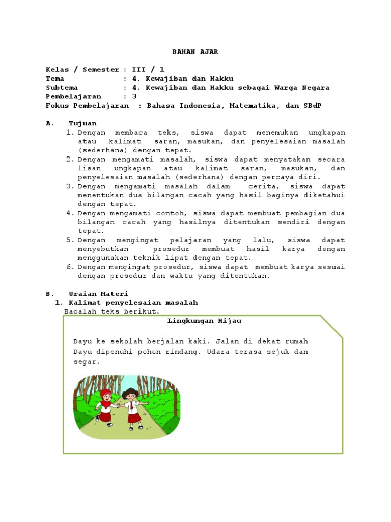 Contoh bahan ajar sd kelas 3.